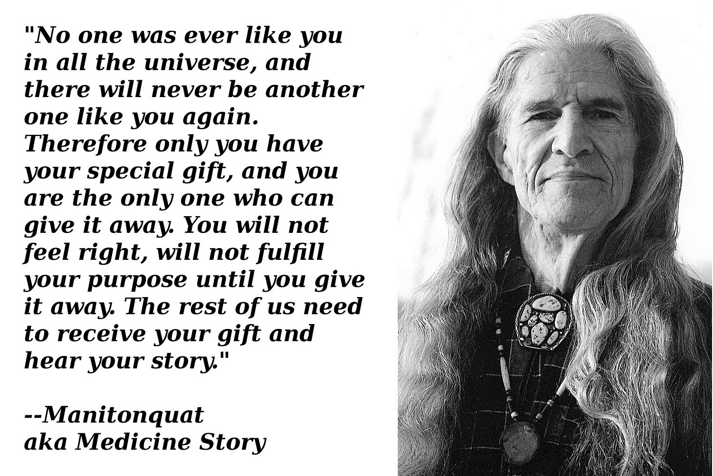 Manitonquat has long inspired me with this quote that he often used at the start of men’s circles and other gatherings. When used in prison settings, it is said that participants, upon release, had a recidivism (repeat offense) rate in the single digits, which is unheard of. With other programs 50% is considered very good. I recommend reading this quote often and especially anytime you begin to feel like you don’t matter.